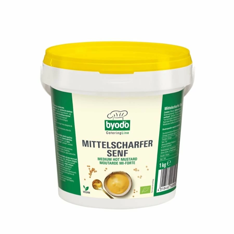 Der mittelscharfe Bio-Senf von Byodo schmeckt nicht nur zu Wurst und Käse, sondern verfeinert Dressings, Suppen sowie Fisch- und Fleischgerichte.