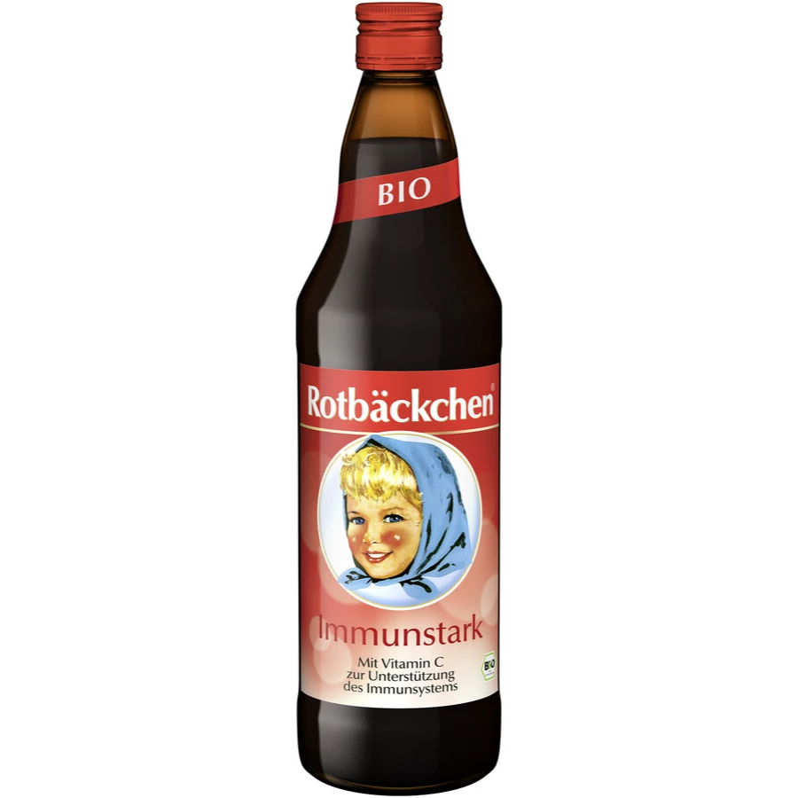 Der lecker fruchtige Rotbäckchen Immunstark enthält Zink und Vitamin. Zink und Vitamin C tragen zu einer normalem Funktion des Immunsystems bei. Der Saft ist gemäß der EG-Öko-Verordnung Bio. Rotbäckchen Immunstark ist vegan.